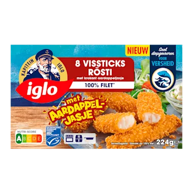 De heerlijke Iglo Vissticks maar dan in een krokant aardappeljasje. Makkelijk te bereiden in de oven of airfryer. Lekker bij de maaltijd of los bij de borrel!