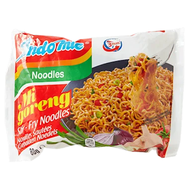 Ingrediënten: Noedels 82,5%: TARWE-meel, geraffineerde palmolie (geraffineerde palmolie, antioxidant E319), zout, zuurteregelaar. E452, E501, E500, verdikkingsmiddel: E412, kleurstof: E101; Kruidenolie 7,3%: Geraffineerde palmolie (geraffineerde palmolie, antioxidant E319), ui; Kruidenpoeder 5%: Suiker, zout, smaakversterker: E621, E631, E627, knoflookpoeder, aroma, gistextract, peperpoeder; Zoete sojasaus 4,8%: Suiker, water, zout, TARWE, SOJA, specerijen, SESAMolie; Chilipoeder 0,4%.