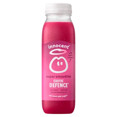 1 ½ geperste appels (67%), ½ geplette banaan, een beetje appelwater, 1 geperste lychee (6,6%), wat geplette drakenvruchtpuree (3,2%), een scheutje limoensap, een scheutje citroensap, een scheutje rode biet- en wortelextract, wat vitamines (B6, B12, C, niacine, panthothenezuur, biotine, foliumzuur)