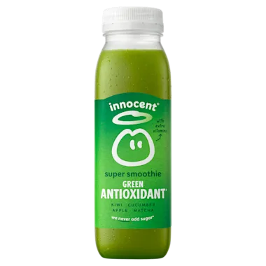 ½ geperste appel (64%), ½ geplette banaan (11%), 5 geperste witte druiven (9,4%), ¼ geplette mango (6,8%), ¼ geplette kiwi (6,1%), wat geplette komkommer (1,5%), een scheutje spirulina-extract, wat gemalen lijnzaad (0,2%), een scheutje limoensap (0,15%), een drupje kurkuma-extract, een scheutje matchathee-infusie (0,05%), wat vitamines (B1, B2, B6, C, E, niacine)