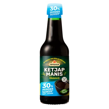 30% minder suiker dan vergelijkbare ketjap manis. Deze is vervangen door Stevia-extract, een zoetstof van natuurlijke oorsprong.