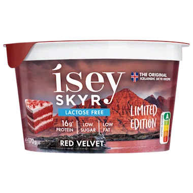 Ísey Skyr Limited Edition Red Velvet is proteïnerijke skyr volgens traditioneel IJslands recept met echte stukjes red velvet cake.