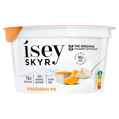 Ísey Skyr Mandarin Pie is proteïnerijke skyr volgens traditioneel IJslands recept met échte stukjes mandarijn.