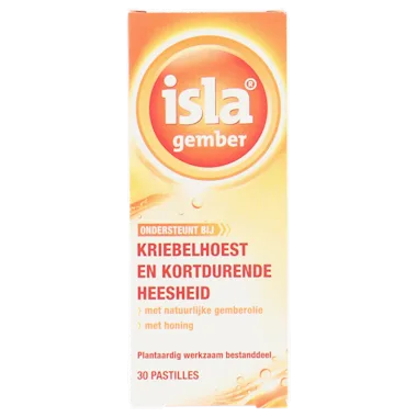 Hulpstoffen: Arabische gom, Sacharose, honing, gemberolie, citroengras olie, aroma, parrafine, water.