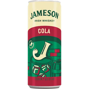 De unieke mix van zachte Jameson Irish Whiskey en Cola, handig voorgemengd in een blikje. Gekoeld smaakt deze Jameson & Cola nog lekkerder, of schenk het blikje uit met ijs!