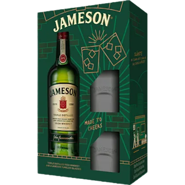 Triple distilled Irish whiskey and 2 tumbler glasses