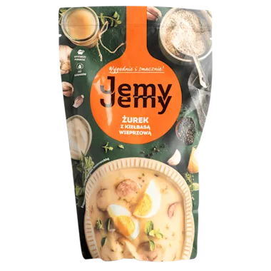 Ingrediënten: water, zuur 20% (water, ROGGEBLOEM, knoflook), varkensworst 10% (varkensvlees, zout, gemodificeerd zetmeel, kruiden, suiker). ROOM 2%, gemodificeerd zetmeel, TARWEBLOEM, zout, gerookte varkensreuzel, gefrituurde uien 0,4% (ui, koolzaad plantaardige olie, TARWEBLOEM, zout), knoflook, koolzaad plantaardige olie, marjolein, peper, gistextract, antioxidant; ascorbinezuur.