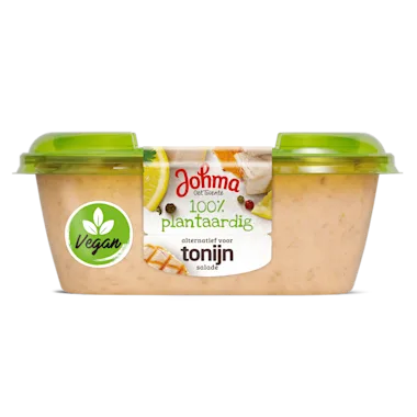 Op zijn tijd kan een broodje tonijnsalade niet ontbreken. Graag stellen we je daarom voor: 100% plantaardige tonijnsalade van Johma. Net zo smeuïg en met dezelfde specerijen als dat je van ons gewend bent, maar dan bereid met plantaardige tonijn. Deze salade is vegan.
