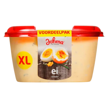 Johma eissalade XL is een goed gevulde eisalade. In een milde, romige saus met frisse bieslook. Voor iedereen die graag een beetje meer Johma wil, zijn er nu verpakkingen van 300 gram. Lekker wat extra voor het hele gezin. Voor op de boterham door de week of broodje in het weekend. Of als je als je je verjaardag viert Over Johma, Johma is de bekendste en grootste saladebereider van Nederland en kent een ruime geschiedenis. Al sinds 1968 komen de lekkerste salades uit de keukens van Johma. Bij het maken van haar salades heeft Johma steeds maar één doel voor ogen: Johma moet gewoon de allerlekkerste zijn! Johma maakt salades die lekker zijn op de boterham, stokbroodje, broodje of op een toastje. Zoals bijvoorbeeld de tonijnalade of de kip-kerriesalade. Lekker en makkelijk, als ontbijt, lunch of voor bij de borrel. Maar daarnaast heeft Johma ook aardappelsalades en rauwkost salades.