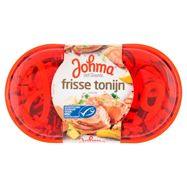 Johma frisse tonijnsalade is een tonijnsalade op basis van MSC tonijn met stukjes augurk die de salade zijn frisheid geeft. Niet voor niets een terechte favoriet! Over Johma, Johma is de bekendste en grootste saladebereider van Nederland en kent een ruime geschiedenis. Al sinds 1968 komen de lekkerste salades uit de keukens van Johma. Bij het maken van haar salades heeft Johma steeds maar één doel voor ogen: Johma moet gewoon de allerlekkerste zijn! Johma maakt salades die lekker zijn op de boterham, stokbroodje, broodje of op een toastje. Zoals bijvoorbeeld de tonijnalade of de kip-kerriesalade. Lekker en makkelijk, als ontbijt, lunch of voor bij de borrel. Maar daarnaast heeft Johma ook aardappelsalades en rauwkost salades.