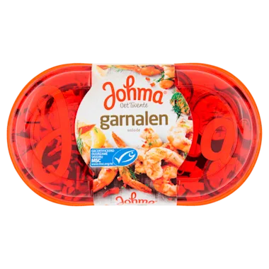 Een salade gevuld met MSC garnalen. Naast garnalen bevat de salade ook surimi. De saus is gemaakt van crème fraîche wat de salade lekker fris maakt. De salade voor iedere vis liefhebber! Door de rijkgevuldheid is deze salade niet alleen lekker voor tijdens de lunch maar ook nog een echte topper voor op de borrelplank. Over Johma, Johma is de bekendste en grootste saladebereider van Nederland en kent een ruime geschiedenis. Al sinds 1968 komen de lekkerste salades uit de keukens van Johma. Bij het maken van haar salades heeft Johma steeds maar één doel voor ogen: Johma moet gewoon de allerlekkerste zijn! Johma maakt salades die lekker zijn op de boterham, stokbroodje, broodje of op een toastje. Zoals bijvoorbeeld de tonijnalade of de kip-kerriesalade. Lekker en makkelijk, als ontbijt, lunch of voor bij de borrel. Maar daarnaast heeft Johma ook aardappelsalades en rauwkost salades.