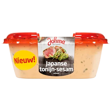 Een rijkgevulde tonijnsalade met komkommer en een Japanse touch van sesam en mosterd. Over Johma, Johma is de bekendste en grootste saladebereider van Nederland en kent een ruime geschiedenis. Al sinds 1968 komen de lekkerste salades uit de keukens van Johma. Bij het maken van haar salades heeft Johma steeds maar één doel voor ogen: Johma moet gewoon de allerlekkerste zijn! Johma maakt salades die lekker zijn op de boterham, stokbroodje, broodje of op een toastje. Zoals bijvoorbeeld de eisalade of de kip-kerriesalade. Lekker en makkelijk, als ontbijt, lunch of voor bij de borrel. Maar daarnaast heeft Johma ook aardappelsalades en rauwkost salades.