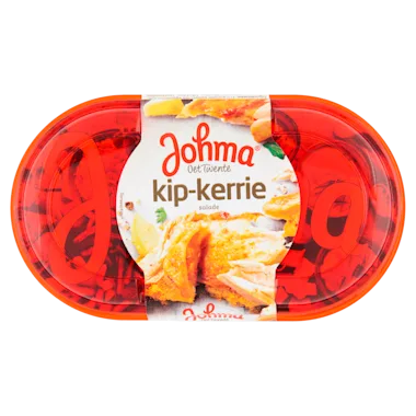 Ingrediënten: 41% gegaarde kipfilet (90% kippenvlees, water, zout, zetmeel, stabilisatoren [difosfaten, trifosfaten], zuurteregelaar [natriumcitraten], dextrose, verdikkingsmiddel [xanthaangom]), koolzaadolie, water, 6% appel, suiker, augurk, 3% ananas, natuurazijn, natuurlijke aroma's (SELDERIJ), gemodificeerd zetmeel, zout, tomatenpuree, gepasteuriseerd EIGEEL, kerriepoeder (specerijen [SELDERIJ] , lavas), specerijen (MOSTERD), uienpoeder, knoflookpoeder, conserveermiddelen (kaliumsorbaat, natriumbenzoaat), zuurteregelaars (natriumacetaten, natriumlactaat), gistpoeder, voedingszuren (citroenzuur, melkzuur), verdikkingsmiddelen (guarpitmeel, xanthaangom), kurkuma-extract, kleurstof (carotenen). Kan sporen bevatten van gluten, melk, noten, pinda’s, sesamzaad, schaaldieren, soja en vis.