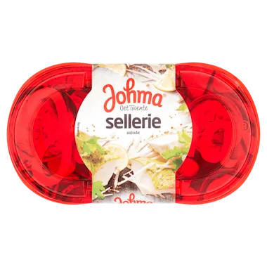 Johma selleriesalade is een lekker frisse salade op basis van sellerie. Met deze salade kun je oneindig veel lekker smaakcombinaties maken. Gebruik de salade als basis op een broodje met bijvoorbeeld een lekkere topping van tomaat of komkommer. Of in combinatie met kipfilet op een boterham tijdens de lunch. Maar ook perfect te gebruiken als bijgerecht tijdens de BBQ. Over Johma, Johma is de bekendste en grootste saladebereider van Nederland en kent een ruime geschiedenis. Al sinds 1968 komen de lekkerste salades uit de keukens van Johma. Bij het maken van haar salades heeft Johma steeds maar één doel voor ogen: Johma moet gewoon de allerlekkerste zijn! Johma maakt salades die lekker zijn op de boterham, stokbroodje, broodje of op een toastje. Zoals bijvoorbeeld de tonijnalade of de kip-kerriesalade. Lekker en makkelijk, als ontbijt, lunch of voor bij de borrel. Maar daarnaast heeft Johma ook aardappelsalades en rauwkost salades.