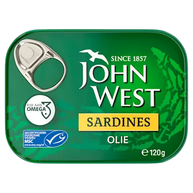 John West sardines in zonnebloemolie, lekker voor op brood of bij de borrel en rijk aan omega 3!