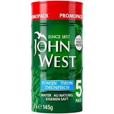 Since 1857. Al sinds 1857 produceert John West met veel trots en passie de lekkerste vis, Met ons duurzaamheidsprogramma SeaChange focussen we op de duurzame visvangst (MSC) maar ook op de vele andere, betekenisvolle verbeteringen voor de hele industrie. Meer weten? Bezoek dan seachangesustainability.com of visopzijnbest.nl/verantwoord-vissen/.