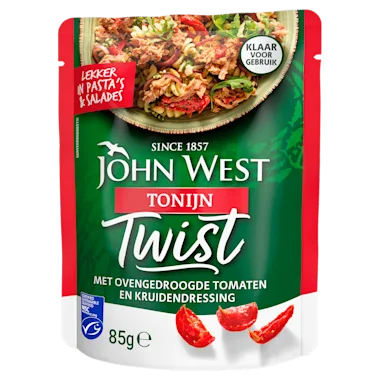 Twist je gerecht John West. Tonijn met ovengedroogde tomaten en kruidendressing, klaar voor gebruik en boordevol goeds. Zo zet je in een handomdraai een heerlijke en verantwoorde maaltijd op tafel.
