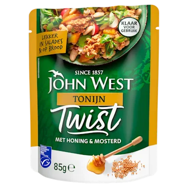 Twist je gerecht John West. Tonijn met honing en mosterd, klaar voor gebruik en boordevol goeds. Zo zet je in een handomdraai een heerlijke en verantwoorde maaltijd op tafel.