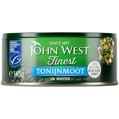 Al sinds 1857 is John West vis op z’n best. Dat proef je in onze tonijnmoot in water. Mooi stevig tonijnvlees, ideaal voor in jouw lunch-, voor- of hoofdgerecht.