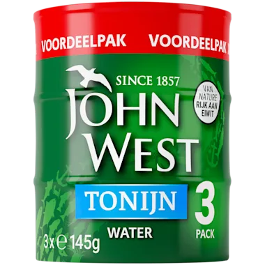 Al sinds 1857 is John West vis op z’n best. Dat proef je in onze tonijnstukken in water. Stevig en sappig tonijnvlees, zonder kunstmatige toevoegingen.