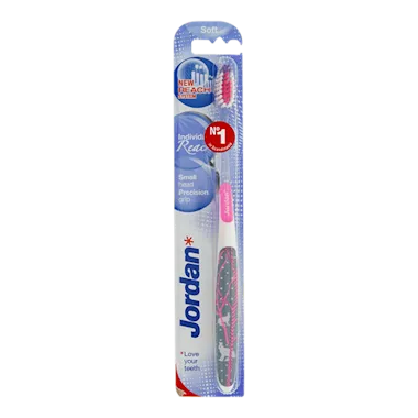De Jordan Individual Reach tandenborstel is een vrolijke en uitbundige tandenborstel. Zo wordt tandenpoetsen pas echt leuk! Individual Reach heeft de keuze uit verschillende designs en kleuren. Het heeft een kleine borstelkop en handgreep voor dynamische grip en nauwkeurige reiniging. De opzetborstel is ontworpen voor optimaal bereik, zelfs op moeilijke plaatsen.