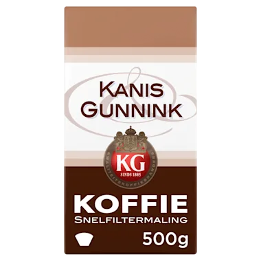 Kanis & Gunnink, fijngemalen koffie. Een speciaal geselecteerde melange van de beste bonen die met veel zorg worden gebrand.