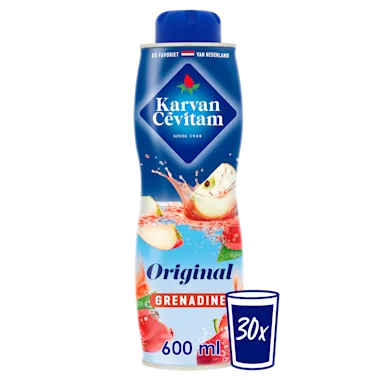 Met de grenadine limonadesiroop van Karvan Cévitam maak je in een handomdraai een lekkere dorstlesser met wel 75% fruit! Voor heerlijk fruitig water met de smaak van appel, vlierbes en rozenbottel meng je 1 deel siroop op 9 delen water. Laat je fantasie de vrije loop door deze siroop te mengen met bruiswater voor je eigen limo met een twist of voeg een klein scheutje siroop toe aan je favoriete mocktail, lekker voor bij de zomerse BBQ! Karvan Cévitam bevat geen kleurstoffen-, en kunstmatige smaakstoffen. Bovendien is het een bron van vitamine C. Nu met 100% natuurlijke smaak! 1 fles maakt tot wel 6 liter limonade (30 glazen).