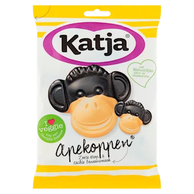 Gele snoet en zwarte kop, dat zijn onze Apekoppen. Proef de unieke junglesmaak van zachte zoete drop met de frismilde smaak van bananen. Rare combinatie, drop met banaan? Een heerlijke combinatie zal je bedoelen, miljoenen kleine en grote apen zijn je al voorgegaan!