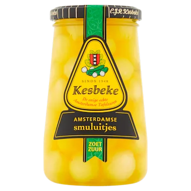 Ingrediënten: Uien, water, azijn, zout, antioxidant: sulfiet (SULFIET), natuurlijke aroma's (MOSTERD), zoetstof: sacharine, kleurstof: riboflavine (vitamine B)