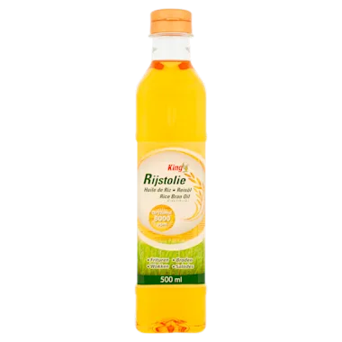 King Rijstolie wordt gewonnen uit het vliesje tussen de rijstkorrel en de huls, het meest voedzame deel van de rijst. Rijstolie heeft een uniek hoog rookpunt waardoor het uitermate geschikt is voor wokken, bakken, grillen en frituren maar kan eveneens gebruikt worden door een salade dressing. De gezonde eigenschappen van deze rijstolie geven een zeer verfijnde smaak.