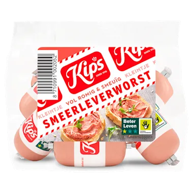 Kips Kleintje Smeerleverworst is vol romig en lekker smeuïg. Voorzien van het 1 ster Beter Leven keurmerk van de Dierenbescherming.