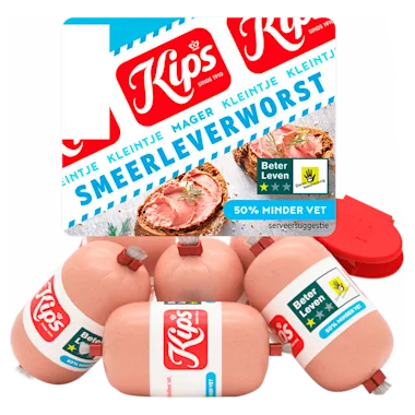 Kips Kleintje Smeerleverworst Mager is lekker smeuïg en bevat 50% minder vet dan de reguliere smeerleverworst. Voorzien van het 1 ster Beter Leven keurmerk van de Dierenbescherming.