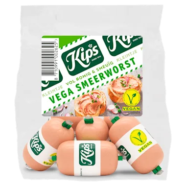Kips Kleintje Vega Smeerworst is gemaakt op basis van soja- en erwteneiwitten en is 100% plantaardig.