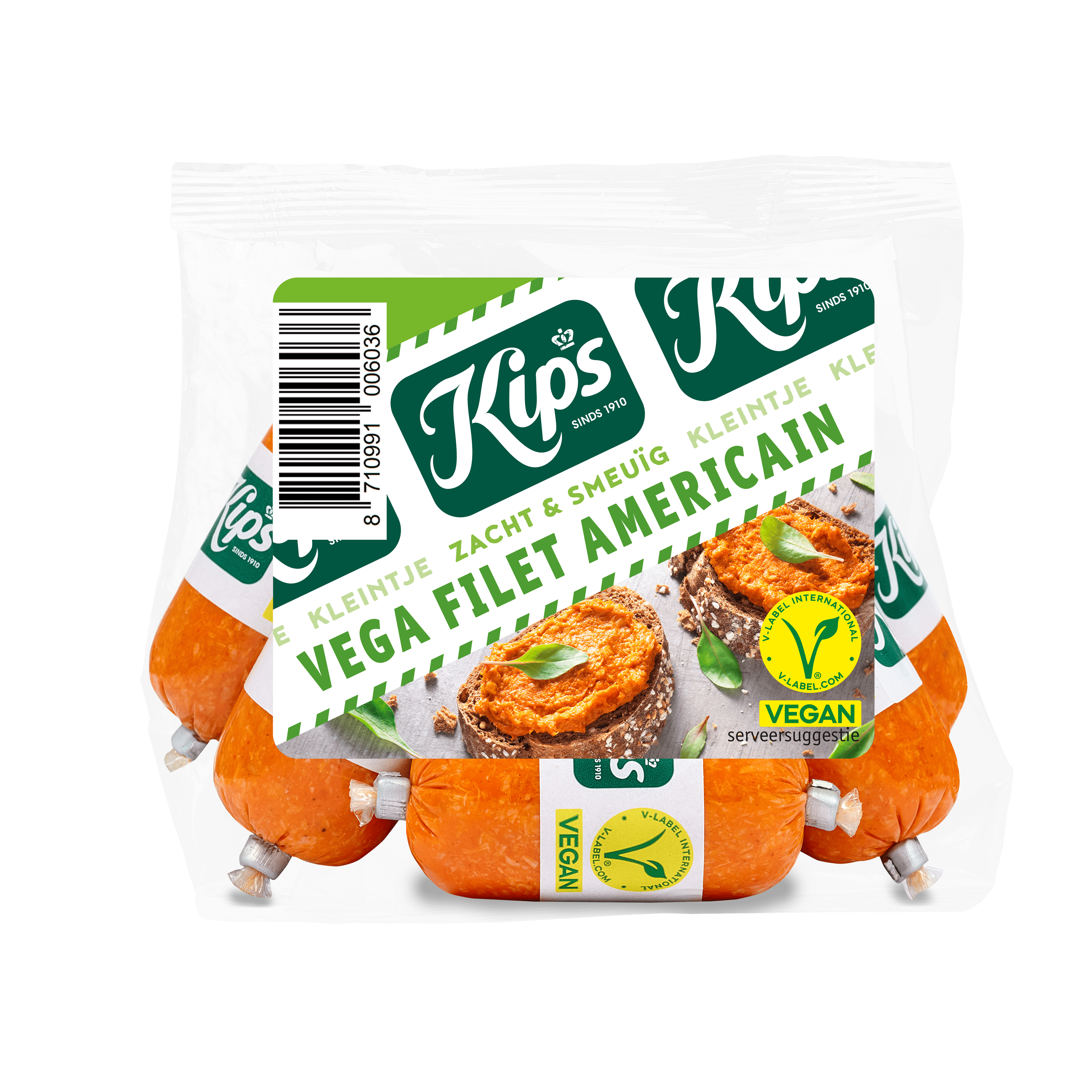 Kips Kleintje Vega Filet Americain is gemaakt op basis van tarwe-eiwitten en is 100% plantaardig. Doordat het verpakt is in handige portieverpakkingen kun je ze eenvoudig meenemen naar school of je werk. Ook leuk om te weten! Doordat het een vegetarische variant is op Filet americain is het ook geschikt voor zwangere vrouwen.
