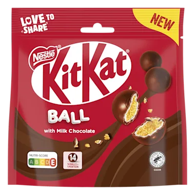 NESTLÉ KITKAT Balls bevat heerlijke chocoladeballs gemaakt van krokante wafel omhuld met een verrukkekelijke laag melkchocolade. Have a break, have a KitKat®.
