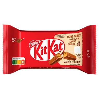 Deze verpakking bevat 5 KITKAT 4 finger melkchocolade candybars.
