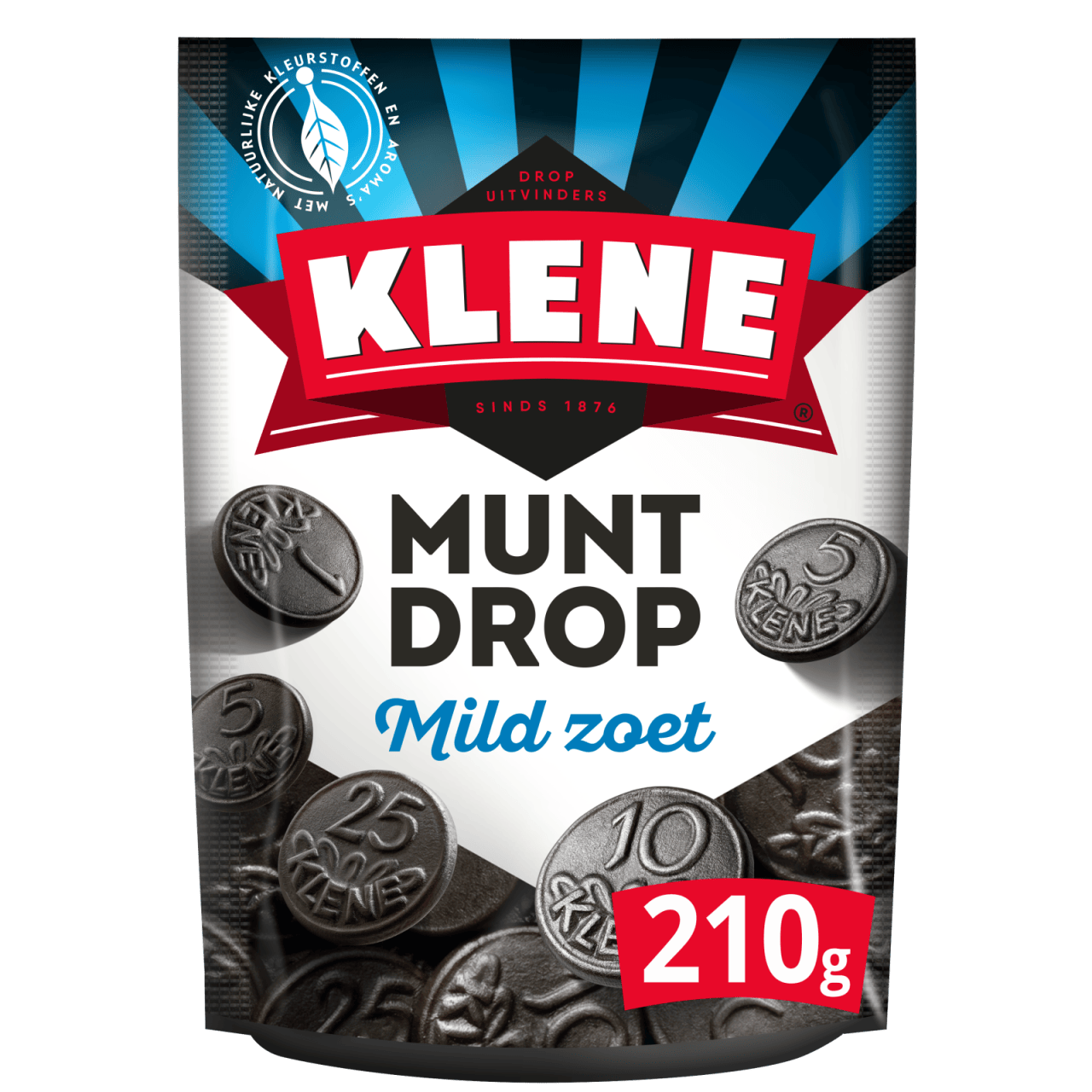 De enige echte Muntdrop van Klene, een lekker stevig dropje met een mild zoete smaak. Nog steeds totaal ongeschikt als betaalmiddel, maar verreweg populairste en lekkerste dropje van Nederland.