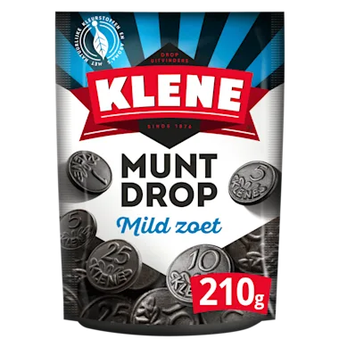 De enige echte Muntdrop van Klene, een lekker stevig dropje met een mild zoete smaak. Nog steeds totaal ongeschikt als betaalmiddel, maar verreweg populairste en lekkerste dropje van Nederland.