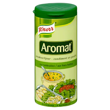 Knorr Aromat Smaakverfijner met Tuinkruiden is bedoeld voor het hervullen van een Aromat Smaakverfijner strooibus. De smaakverfijner met tuinkruiden is een andere variant op de smaakverfijner naturel. De groene kruiden en paprika in het product zijn zorgvuldig geselecteerd zodat het product gebruikt kan worden tussen vele soorten gerechten. De toevoeging van de Aromat Smaakverfijner met Truinkruiden zorgt ervoor dat elk gerecht op een verfijnde manier, naar eigen wens, op smaak kan worden gebracht. Het is een lekkere toevoeging op een legio aan gerechten. Gebruik het bijvoorbeeld bij het bereiden van lekkere salades om een extra smaaksensatie te creëren. Ook in soepen en sauzen is de Knorr Aromat Smaakverfijner met Tuinkruiden een goede toevoeging die net voor dat ene extraatje zorgt. Weet jij soms niet meer hoe je het beste uit een gerecht naar boven kan halen of welke maaltijd je nu weer op tafel moet toveren? Knorr Aromat Smaakverfijner geeft een nieuwe dimensie aan koken én aan eten. Simpelweg op een salade, door een groentesoep of door warme groentes; de smaakverfijner van Knorr gebruik je naar eigen wens. Verras de rest van je gezin met een nieuwe smaaksensatie en word chef-kok in huis. Let op: bij het gebruik van Knorr Aromat Smaakverfijner met Tuinkruiden is toevoeging van zout en peper niet meer nodig. Gebruik de smaakverfijner bij iedere gewenste maaltijd, met altijd mate.