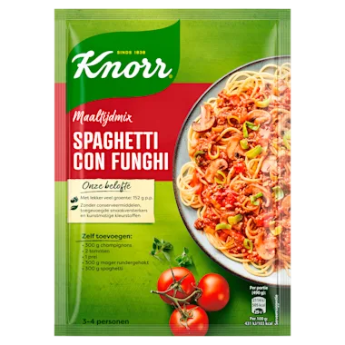 Ontdek de Knorr Spaghetti con Funghi Maaltijdmix, een snel en makkelijk gerecht met lekker veel groente. Laat je inspireren door Knorr en zet de lekkerste gerechten met gemak op tafel.