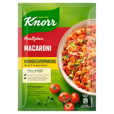 Ontdek de Knorr Macaroni Maaltijdmix Voordeelverpakking, een snel en makkelijk gerecht met lekker veel groente. Laat je inspireren door Knorr en zet de lekkerste gerechten met gemak op tafel. Deze maaltijdmix is verkrijgbaar in voordeelverpakking, geschikt voor 5 tot 6 personen.