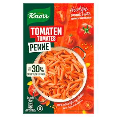 Met de Knorr Tomaten Penne kun jij ervoor zorgen dat je zonder moeite dat extra beetje groente toevoegt aan je gerecht. Deze pasta bestaat voor 30% uit groente en is hierdoor een perfect alternatief en een veelzijdige basis voor vele gerechten. Wil je met pasta snel en makkelijk extra groente op tafel zetten? Vervang dan eens de traditionele pasta met de Knorr Tomaten Penne! Knorr geeft je hiermee een perfect alternatief om met een pasta wat extra groente toe te voegen aan je maaltijd.