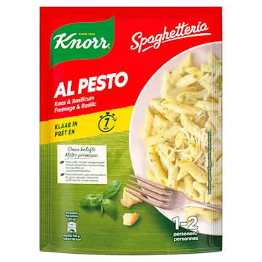 Al sinds 1838 was Carl Heinrich Knorr al aan het experimenteren met het drogen van kruiden en groenten. Dit was volgens hem de manier om de smaak en voedingswaarde te behouden. Zijn missie was om koken voor vrouwen zo gemakkelijk mogelijk te maken, zonder dat de kwaliteit van het eten achteruit zou gaan. Vanwege de rijke historie en de invloed van chefs van over de hele wereld is culinair vakmanschap een kenmerk van Knorr geworden. Knorr is altijd op zoek naar nieuwe innovatieve producten, die het koken eenvoudiger kunnen maken. Knorr Spaghetteria gerechten bestaan uit pasta met een lekkere saus en zijn heel snel en gemakkelijk te bereiden. Voor wanneer je zin hebt in een makkelijke en smaakvolle maaltijd! Een gerecht zonder toegevoegde smaakversterkers, kunstmatige kleurstoffen en conserveermiddelen. Het gerecht is klaar te maken in de pan door de inhoud van de zak toe te voegen aan warm water. Vervolgens hoef je het alleen nog te koken en af en toe door te roeren. Of maak het gerecht eenvoudig klaar in de magnetron. Voeg het gerecht toe aan warm water en laat het gaar worden in de magnetron. Knorr Spaghetteria Al Pesto 155G is een heerlijk gerecht van pasta met pestosaus en klaar binnen een handomdraai.