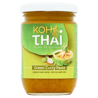 De groene curry pasta is de pittigste van onze vijf Thaise curry pasta's. Het zijn de verse groene pepers die voor die pittigheid, de kleur en de smaak zorgen. Lekker als curry met kip, vis of groenten, maar ook lekker in de soep.