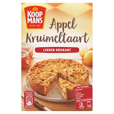 Appelkruimeltaart, wie houdt daar nou niet van? Of je nu een ervaren bakker bent of het juist leuk vindt om eens samen met de kinderen aan de slag te gaan, met deze bakmix van Koopmans zet je altijd iets bijzonders op tafel. Serveer de taart als dessert na een gezellige maaltijd, bij de koffie tijdens een verjaardagsfeest, of gewoon als een extraatje op een gewone dag.