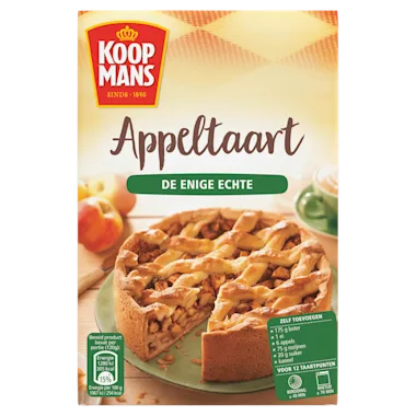 Met deze appeltaart bakmix van Koopmans zet je een klassieke appeltaart op tafel voor bezoek of geniet je zelf van een stuk versgebakken taart en een kop koffie. Het bakken van een appeltaart zorgt niet alleen voor gezelligheid, het vult je huis ook met een heerlijke geur. De combinatie van een brosse bodem en een friszoete appelvulling maakt iedere hap een feestje. Serveer de taart met een kop koffie of thee en geniet samen met familie en vrienden van jouw heerlijke versgebakken taart. Of het nu een speciale gelegenheid is of een doordeweekse dag die wat extra's verdient, met de Koopmans Appeltaart bakmix wordt elk moment bijzonder.