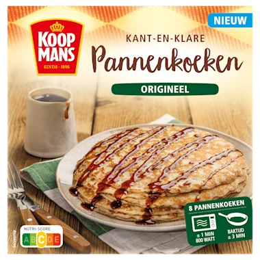 Deze kant-en-klare pannenkoeken zijn precies wat je van Koopmans mag verwachten: vertrouwd van smaak en nu nóg sneller op tafel. Bewaar ze in de vriezer en warm ze in slechts 1 minuut op in de magnetron, of bak ze kort in de pan voor dat heerlijke, knapperige randje. Ideaal voor drukke dagen, met de vertrouwde kwaliteit van Koopmans.