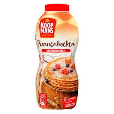 Deze handige mix bevat een mix van verschillende granen, wat zorgt voor voedzame en smakelijke pannenkoeken. Combineer deze pannenkoeken met kaas of spek voor de hartige trek of kies voor een variant met appel, poedersuiker of stroop voor de zoete trek. Hoe het werkt? Voeg 400 ml melk toe, een minuutje goed schudden en bakken maar!