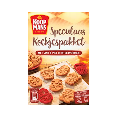 Sinterklaas wordt nog gezelliger metMet het Koopmans Speculaas Koekjespakket wordt bakken tijdens Sinterklaas nog leuker. Het Koekjespakket bevat een speculaasmix en een Sint & Piet uitsteekvorm, waarmee je zelf met gemak 16-18 heerlijke speculaaskoekjes maakt. Voeg boter toe, kneed en rol het deeg om vervolgens koekjes uit te steken met de Sint en Piet uitsteekvormen. Na het bakken kun je de speculaaskoekjes ook versieren, met bijvoorbeeld decoratiestiften, glazuur en strooidecoratie naar keuze. Zo breng je (samen met je kinderen) de Sinterklaassfeer echt in huis.