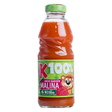 Ingrediënten: appelsap uit geconcentreerd sap (57%), puree uit wortelen (37%), frambozen (4%) en appels (2%), vitamine C, aroma.